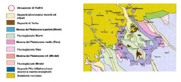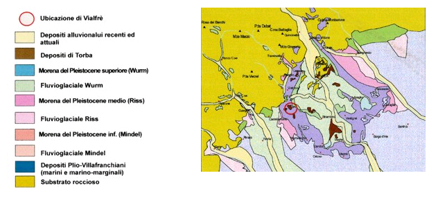 In prossimità delle aree più depresse, sono infine presenti i limi, limi torbosi e torbe di origine lacustre-palustre in quanto depositatisi al fondo di originari laghetti racchiusi da cordoni collinari (es. Torbiera di Vialfrè).